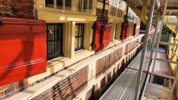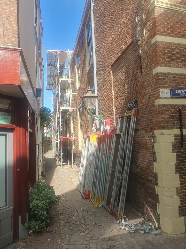 Steigers ter voorbereiding op de vervanging van de laatste ramen.