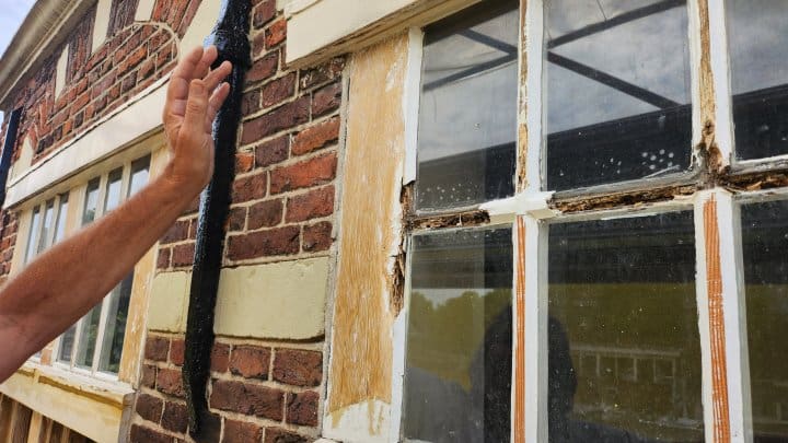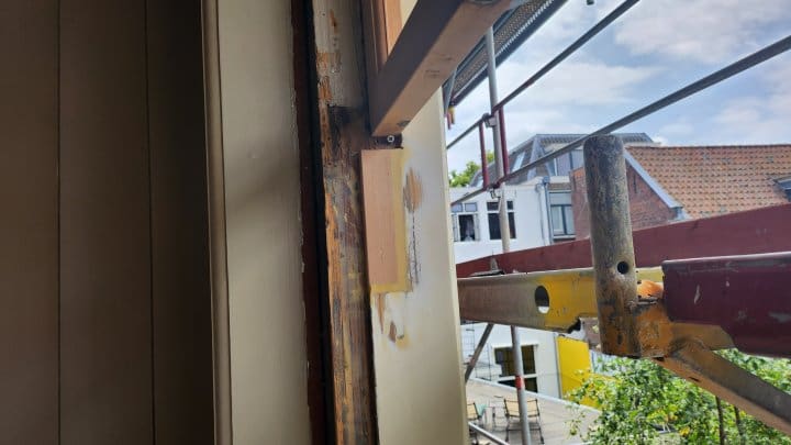 Het kozijnhout van de ramen in de gevel aan de Schoolsteeg wordt gerepareerd en de schuiframen worden vervangen.