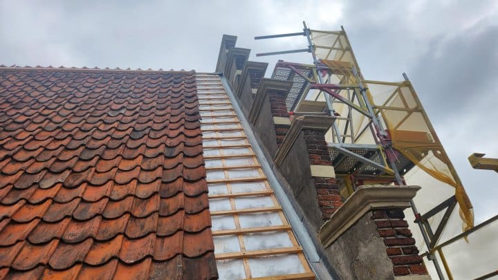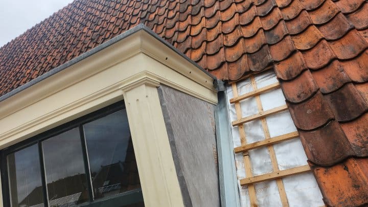 In de nieuwe situatie komt er geen opstaande loden rand aan de zijkant van pannendaken, In plaats daarvan komen er ‘verholen’ afwateringsgoten.
