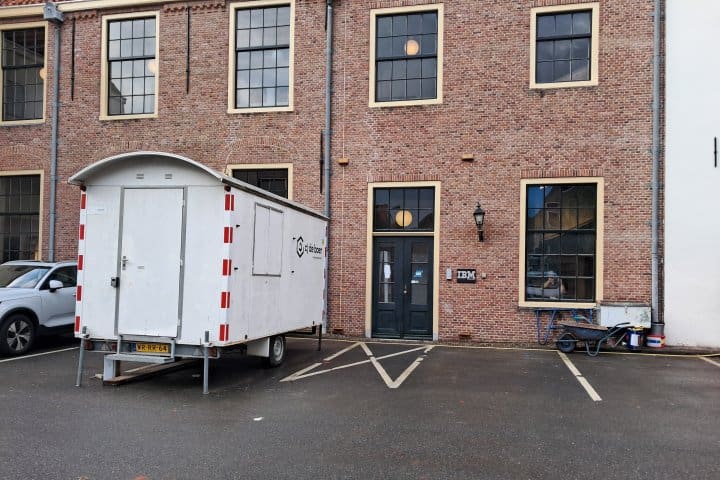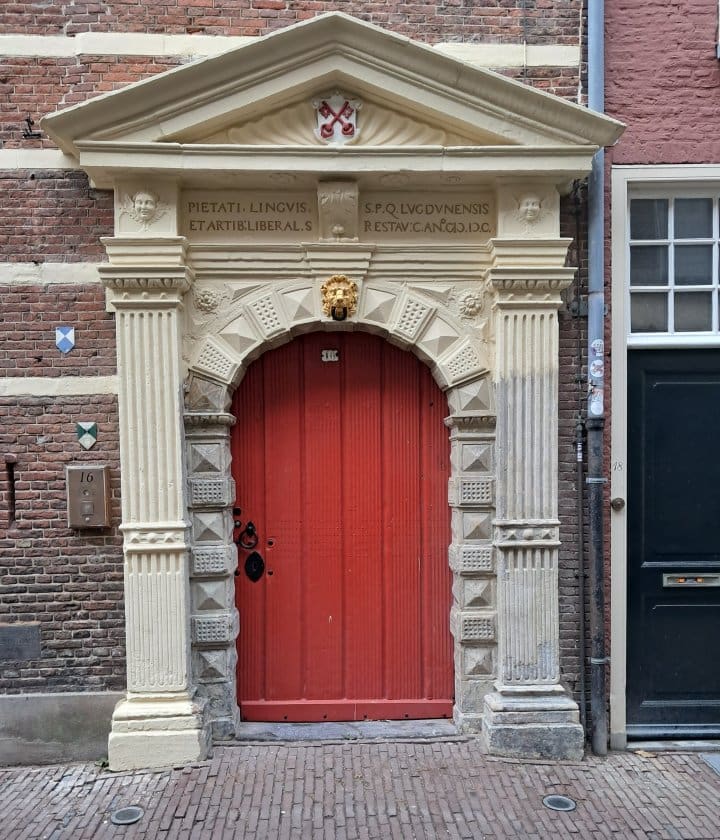 De toegangsdeur aan de kant van de Pieterskerkgracht wordt in de praktijk verreweg het meest gebruikt. Aan de buitenkant zal nog een glazen tochtportaal worden geplaatst.